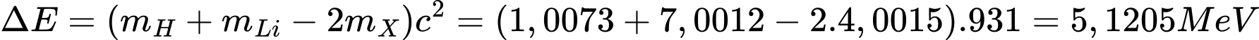 , nên phản ứng là phản ứng thu năng lượng.=> Năng lượng thu vào là:
