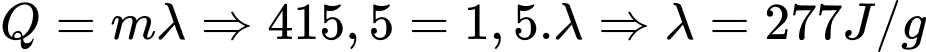 Câu 27 [820801]: Nhiệt lượng cần cung cấp để làm nóng chảy hoàn toàn 1,5 g vật liệu ở nhiệt độ nóng chảy là 415,5 J. Nhiệt nóng chảy riêng của vật liệu trên bằng bao nhiêu J/g?