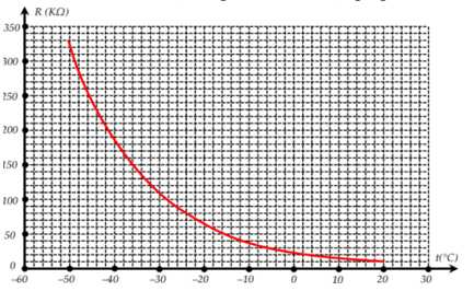 Câu 6 [823373]: Đồ thị hình bên biểu diễn sự thay đổi điện trở của một điện trở nhiệt theo nhiệt độ. Nếu sử dụng điện trở nhiệt này trong một nhiệt kế điện trở thì nhiệt kế có độ nhạy cao nhất trong khoảng nhiệt độ nào?