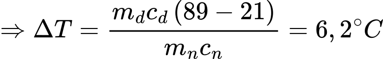 Câu 27 [823414]: Người ta thả một miếng đồng khối lượng 0,50 kg vào 0,50 kg nước. Miếng đồng nguội đi từ 89°C xuống 21°C. Hỏi nước nóng lên thêm bao nhiêu °C (làm tròn kết quả đến chữ số hàng phần mười)? Biết nhiệt dung riêng của đồng là 380 J/(kg.K), nhiệt dung riêng của nước là 4200 J/(kg.K).