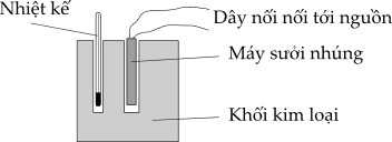 Câu 19 [862485]: Một sinh viên trong phòng thí nghiệm sử dụng bộ dụng cụ được trình bày trong hình dưới để xác định nhiệt dung riêng của nhôm.