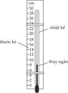 Câu 24 [862494]: Một nhiệt kế thủy ngân không có thang đo được dán vào thước như hình.
