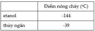 Câu 9 [862477]: Điểm nóng chảy của etanol và thủy ngân được cho như bảng dưới: