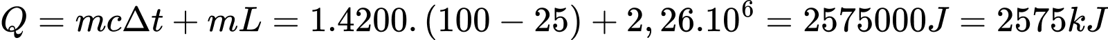 Câu 28 [821965]: Cho nhiệt hoá hơi riêng của nước ở 100°C là 2,26.106 J/kg và nhiệt dung riêng của nước là 4200 J/kgK. Nhiệt lượng cần thiết để làm cho 1 kg nước ở 25°C chuyển hoàn toàn thành hơi ở 100°C là bao nhiêu kJ?