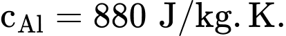 Câu 27 [821961]: Người ta thả một miếng nhôm khối lượng 500 g vào nước. Miếng nhôm nguội đi từ 80°C xuống 20°C. Hỏi nước nhận một lượng nhiệt bằng bao nhiêu kJ? Biết nhiệt dung riêng nhôm là