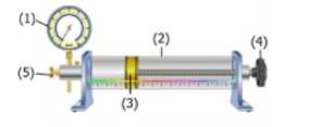 Câu 4 [825638]: Trong thí nghiệm khảo sát mối liên hệ giữa thể tích và áp suất của một lượng khí xác định khi nhiệt độ được giữ không đổi, các học sinh lớp 12A được giáo viên giới thiệu bộ thí nghiệm như hình bên. Học sinh xác định tên gọi các bộ phận của bộ thí nghiệm. Xác định đúng là