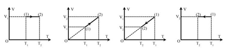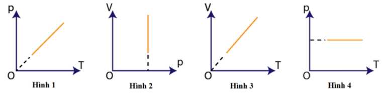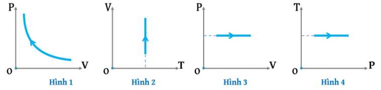 Hình 1 là đẳng tích. Hình 2,3,4 đều là đẳng áp.