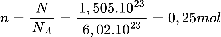 Số mol khí có trong một khối lượng chất khí cho trước được xác định bởi biểu thức