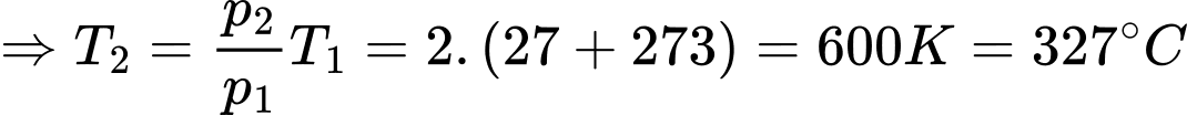 Câu 28 [862549]: Trong điều kiện thể tích không đổi, một lượng khí có nhiệt độ ban đầu là 27 °C, áp suất po. Cần đun nóng chất khí lên đến nhiệt độ bao nhiêu °C để áp suất của nó tăng lên 2 lần.