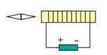 Câu 8 [862591]: Hình vẽ cho thấy một cuộn dây hình chữ nhật phẳng được đặt giữa các cực của một nam châm. Có một dòng điện trong cuộn dây làm cho nó quay theo hướng được chỉ ra trong hình.