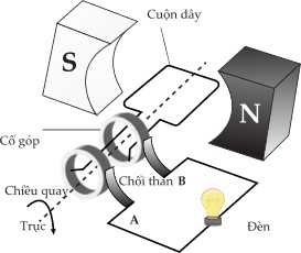 b) Đúng: Sử dụng cổ góp và chổi quét để đưa điện ra giúp dây không bị xoắn khi khung dây quay.