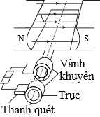 Một khung dây dẫn phẳng có diện tích S, gồm N vòng dây quay đều với tốc độ góc a quanh trục cố định vuông góc với cảm ứng từ B của từ trường đều (hình bên).