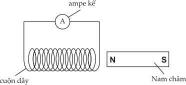 Câu 12 [862595]: Một học sinh làm thí nghiệm kiểm tra hiện tượng cảm ứng điện từ. Bạn ấy có một thanh nam châm thẳng và một cuộn dây được nối với một ampe kế nhạy.
