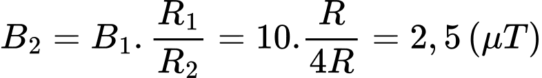 Nếu cho dòng điện trên qua vòng dây có bán kính 4R thì cảm ứng từ tại tâm vòng dây có độ lớn là