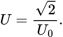 Câu 10 [832266]: Gọi U là giá trị hiệu dụng và U0 là giá trị cực đại của điện áp xoay chiều. Hệ thức đúng là