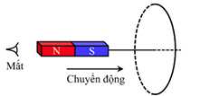 Câu 17 [835139]: Tiến hành thí nghiệm theo sơ đồ như hình vẽ. Dịch chuyển nam châm đi xuyên qua vòng dây dẫn theo chiều từ trái sang phải, dọc theo trục đối xứng của vòng dây. Dòng điện cảm ứng xuất hiện trong vòng dây có chiều (theo góc nhìn của người quan sát)