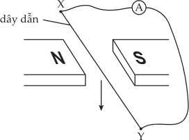 X và Y được nối lần lượt bằng bốn dây, mỗi dây làm bằng một vật liệu khác nhau. Mỗi dây sau đó được di chuyển nhanh chóng xuống dưới giữa các nam châm. Vật liệu nào sẽ không tạo ra dòng điện cảm ứng trong dây?