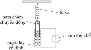 Câu 15 [862606]: Một nam châm được treo vào một lò xo để nó có thể di chuyển tự do bên trong một cuộn dây đứng yên. Cuộn dây được nối với một điện kế nhạy