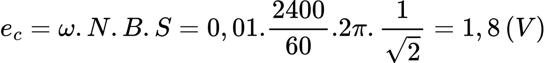 Một khung dây dẫn phẳng có diện tích S = 100 cm2 gồm 200 vòng dây quay đều với tốc độ 2400 vòng/phút trong một từ trường đều có vectơ cảm ứng từ vuông góc trục quay của khung và có độ lớn B = 0,005T.