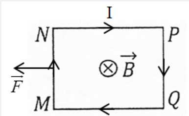 vuông góc với mặt phẳng khung dây như hình vẽ. Trong khung dây có dòng điện chạy theo chiều MNPQM. Lực từ tác dụng lên cạnh MN cùng hướng với