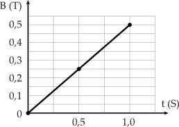 Một vòng dây kín có diện tích 0,6 m2 đặt trong từ trường đều sao cho vectơ cảm ứng từ song song và cùng chiều với vectơ đơn vị pháp tuyến của mặt phẳng vòng dây. Độ lớn cảm ứng từ biến thiên theo thời gian như đồ thị hình vẽ: