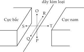 Câu 12 [862627]: Một dây kim loại được đặt giữa các cực của một nam châm. Dây có thể được di chuyển theo một trong ba hướng OP, QR và ST. Dây phải được di chuyển theo hướng nào hoặc các hướng nào để tạo ra suất điện động cảm ứng trên dây?