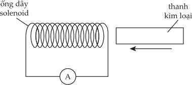 Câu 14 [862631]: Một ống dây (solenoid) được nối với một ampe kế rất nhạy. Một thanh được đưa vào một đầu của ống dây. Ampe kế cho thấy có một dòng điện nhỏ trong mạch khi thanh đang di chuyển.