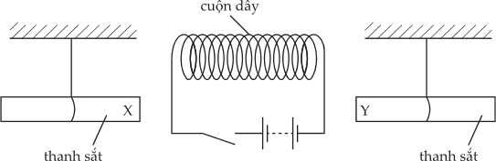 Hai thanh sắt chưa nhiễm từ treo tự do gần các đầu đối diện của cuộn dây. Khi công tắc được đóng, cả X và Y đều di chuyển về phía cuộn dây vì hai thanh sắt nằm trong từ trường của ống dây.