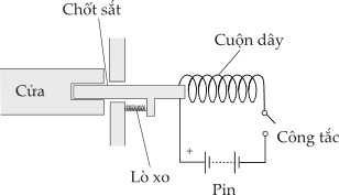 Câu 22 [862640]: Dưới đây là sơ đồ khóa điện từ được sử dụng để cố định cửa. Cửa mở khóa khi đóng công tắc.
