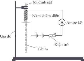 a) Đúng: Khi giảm giá trị điện trở, cường độ dòng điện ở ống dây tăng lên, từ trường do ống dây sinh ra mạnh hơn nên số ghim nam châm giữ được sẽ tăng lên.