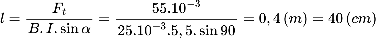 Câu 27 [835124]: Một đoạn dây dẫn mang dòng điện có cường độ 5,5 A nằm trong từ trường đều và vuông góc với cảm ứng từ. Biết cảm ứng từ của từ trường B = 25 mT và lực từ tác dụng lên đoạn dây có độ lớn 55 mN. Tìm chiều dài đoạn dây theo đơn vị cm?
