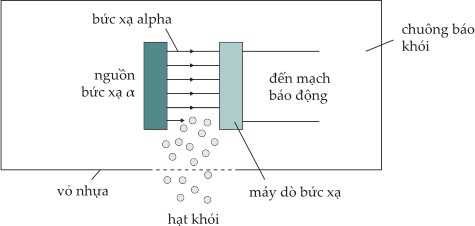 Câu 22 [862697]: Thiết bị báo động khói chứa nguồn bức xạ alpha và máy dò bức xạ. Sơ đồ dưới đây cho thấy một phần bên trong của thiết bị báo khói.