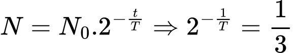 Sau 1 năm, còn lại một phần ba số hạt nhân ban đầu chưa phân rã nên ta có: