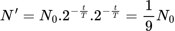 Sau 1 năm nữa, số hạt nhân còn lại chưa phân rã của chất phóng xạ đó giảm 9 lần so với số hạt nhân ban đầu
