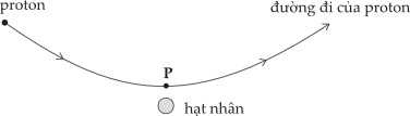 Câu 2 [863084]: Sơ đồ cho thấy quỹ đạo của một proton bị lệch bởi hạt nhân của một nguyên tử. Điểm P là vị trí của proton khi nó ở gần hạt nhân nhất. Điều nào không đúng về proton dọc theo quỹ đạo của nó tại điểm P?