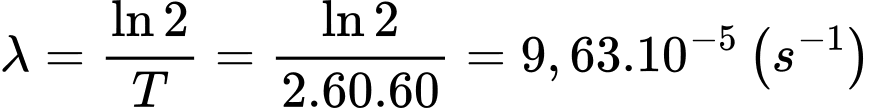 Câu 28 [863107]: Hằng số phóng xạ của nguồn là bao nhiêu x.10-5 s-1. Tìm x (kết quả làm tròn đến chữ số hàng phần trăm).