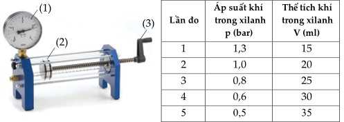 Câu 20 [863141]: Một nhóm học sinh tiến hành thí nghiệm kiểm chứng định luật Boyle được bố trí như hình vẽ. Kết quả thí nghiệm được nhóm học sinh ghi lại như bảng: