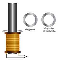 d) Đúng: Thay vòng nhôm trên bằng vòng nhôm có khe hở. Không có hiện tượng xảy ra với vòng nhôm có khe hở do không có dòng điện xoáy chạy trong nó.