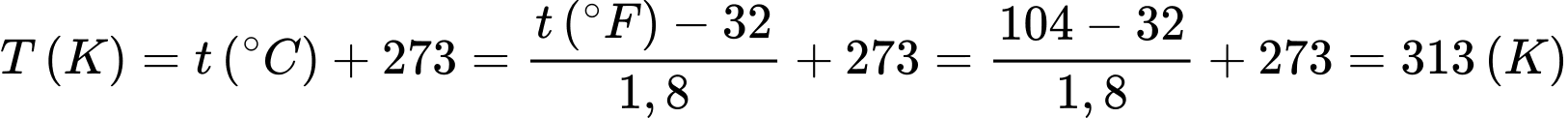 Ứng với thang nhiệt Fahrenheit, nhiệt độ đo được là 104 °F. Ở thang nhiệt giai Kenvin (K) nhiệt độ sẽ là