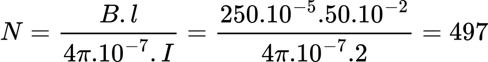 Câu 26 [839686]: Nếu muốn tạo ra từ trường có cảm ứng từ B = 250.10-5 T bên trong một ống dây, mà dòng điện chạy trong mỗi vòng của ống dây chỉ là 2 A thì số vòng quấn trên ống phải là bao nhiêu, biết ống dây dài l = 50 cm.
