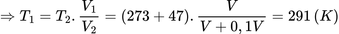 Câu 25 [839542]: Thể tích của một lượng khí xác định tăng thêm 10% khi nhiệt độ của khí được tăng tới 47°C. Xác định nhiệt độ ban đầu của lượng khí (tính theo °C), biết quá trình trên là đẳng áp. (Kết quả được làm tròn đến phần nguyên)