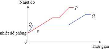 Ta thấy thời gian để đưa vật P từ nhiệt độ phòng lên nhiệt độ sôi ngắn hơn thời gian để đưa vật Q từ nhiệt độ phòng lên nhiệt độ sôi nên năng lượng cần thiết để tăng nhiệt độ của P từ nhiệt độ phòng đến nhiệt độ sôi nhỏ hơn năng lượng đó ở Q.