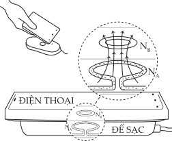 Câu 14 [863175]: Hiện nay công nghệ sạc điện thoại không dây đang trở nên phổ biến vì tính an toàn và tiện lợi của nó. Hình vẽ bên mô tả nguyên lí hoạt độn của sạc điện thoại không dây. Trong đế sạc có cuộn dây