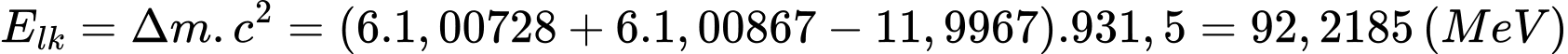 lần lượt là 1,00728 u; 1,00867 u và 11,9967 u. Cho 1 u = 931,5 MeV/c². Năng lượng liên kết của hạt nhân