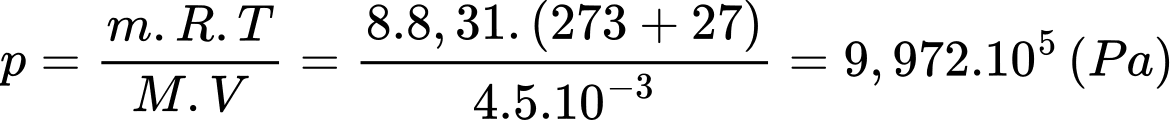 Một bình có thể tích 5,0 lít chứa 8,0 g khí helium ở nhiệt độ 27,0 °C. Coi khí helium trong bình là khí lí tưởng, khối lượng mol của helium là 4,0 g/mol.