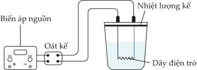 Câu 19 [863222]: Để xác định nhiệt dung riêng của nước, một nhóm học sinh tập đặt bộ thí nghiệm như hình vẽ và tiến hành theo các bước