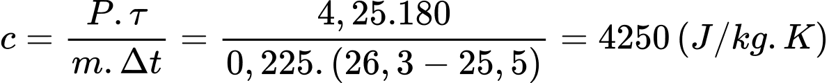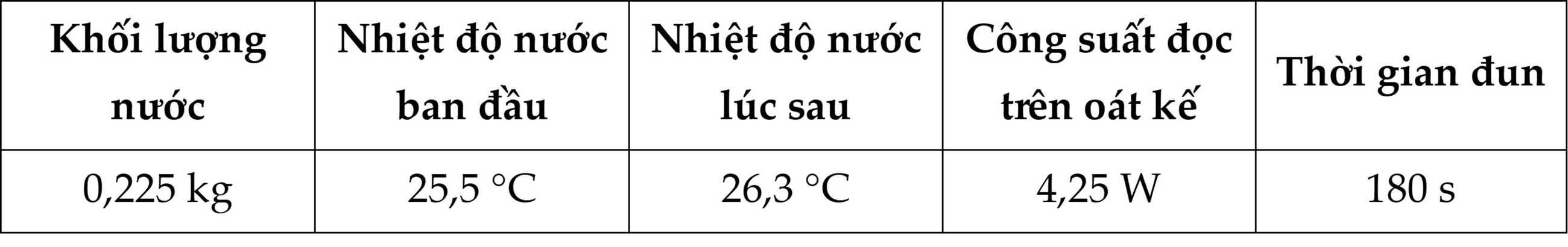 Từ số liệu đo được, nhóm học sinh xác định được nhiệt dung riêng của nước là