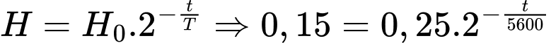 là 5600 năm) người ta đo được độ phóng xạ của một đĩa gỗ của người Ai cập cổ là 0,15 Bq, độ phóng xạ của một khúc gỗ vừa mới chặt có cùng khối lượng là 0,25 Bq. Tuổi của đĩa cổ là bao nhiêu năm (làm tròn kết quả đến chữ số hàng đơn vị)?