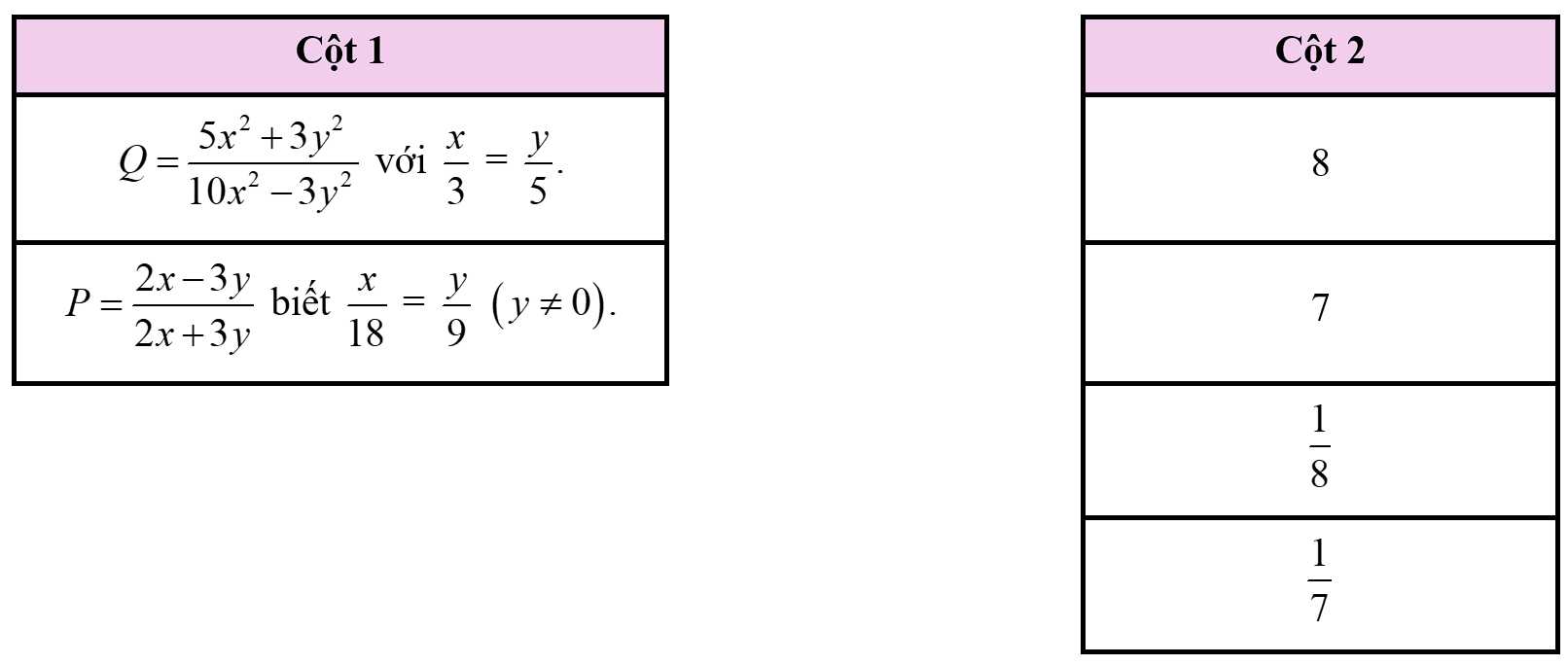 Hãy ghép biểu thức trong cột 1 với giá trị phù hợp nhất trong cột 2. Có hai giá trị thừa mà bạn không cần sử dụng.