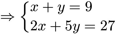 Dựa vào dữ kiện: Có 9 tờ tiền loại 2000 đồng và 5000 đồng, trị giá tất cả là 27 000 đồng.